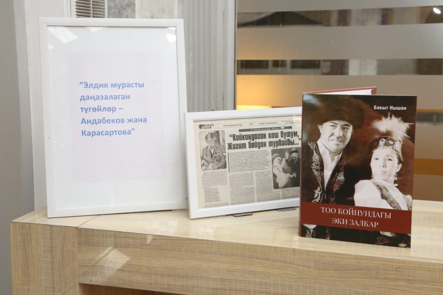 Улуттук китепкананын маалымат-массалык иштер жана маданий программалар бөлүмү тарабынан «Элдик мурасты даңазалаган түгөйлөр – Андабеков жана Карасартова» деген темада китеп көргөзмө да коюлду.