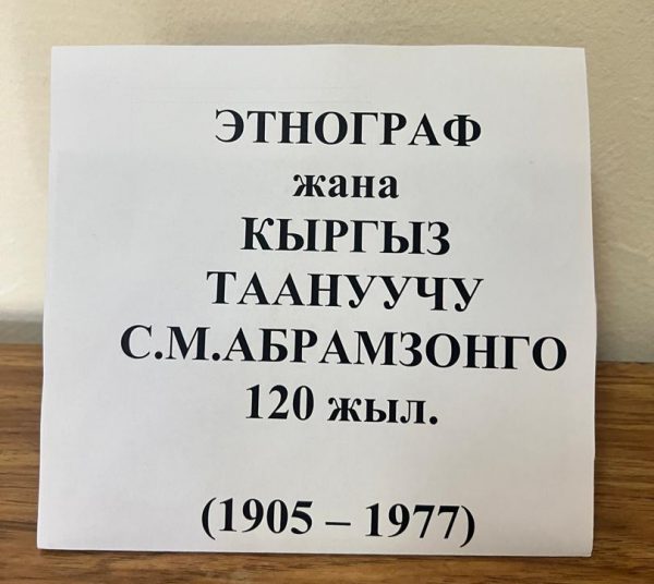 Бүткүл илимий чыгармачылык өмүрүн кыргыз этнографиясын изилдөөгө арнаган белгилүү советтик окумуштуу, түрколог, этнограф С.М.Абрамзон (1905-1977) Орлов губерниясында туулган. Мектепти бүтүп, Ленинград мамлекеттик университетинин география факультетинин этнография бөлүмүн 1926-жылы аяктаган. 1926-1931-жылдары Кыргызстанда эмгектенип, аймак таануу музейинин директору болуп эмгектенген. Эл агартуу комиссариятына караштуу Маданий курулуш илим-изилдөө институтунун директору болгон.1953-1955-жылдары этнографиялык экспедицияларды уюштуруп, кыргыздардын тарыхын, маданиятын, үрп-адатын о.э. «Манас» эпосун изилдеп, эпостун этнографиялык булак катары баалуулугун белгилеп кеткен. 100дөн ашык илимий эмгектерди жараткан. Көп жылдык изилдөөлөрүнүн жыйынтыгында «Кыргыз элинин маданиятынын очерки» (1949), «Түндүк Кыргызстандагы кыргыздардын этностук курамы» (1960), «Кыргыздар жана алардын этногенетикалык жана тарыхый — маданий байланыштары» (1971), «Баатырдык «Манас» эпосу кыргыз маданиятынын эстелиги» ж.б. көптөгөн эмгектерди жазган. Ал кыргыз этнографиясына ири салым кошкон чоң аалым, ак ниет адис, жаш окумуштуулардын насаатчысы болгон. Ардак белгиси ордени, медалдар менен сыйланган.