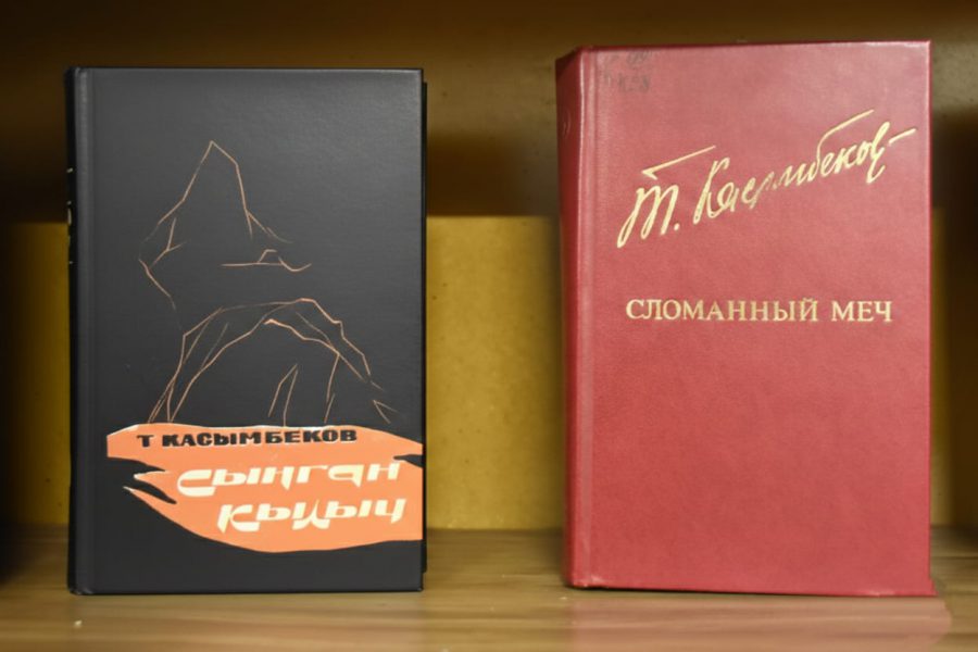 Китеп көргөзмөгө жазуучунун жаш өспүрүмдөргө арналган, 1958-жылы жарык көргөн «Коке» (Көкө) повести, 1966-жылы басылып чыккан «Алымкан» поэмасы, 1966-жылы жарык көргөн «Сынган кылыч» тарыхый романынын биринчи китеби, 1979-жылы басылып чыккан, алты бөлүктөн турган ушул эле романы, 1986-жылы жарык көргөн «Келкел» тарыхый романы,Т. Касымбековдун 75 жылдыгына арналып Улуттук китепкана тарабынан түзүлгөн библиографиялык көрсөткүч жана жазуучу жөнүндө макалалар жайгаштырылды.